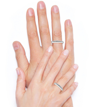 - Выбирая модель свадебного кольца (классического или особой формы на заказ), учитывайте его толщину. Например, оптимальная толщина женского украшения подбирается в зависимости от формы безымянного пальца, а вот мужское обычно изготавливается толщиной до 2,7 мм, тогда оно не будет мешать при рукопожатии.